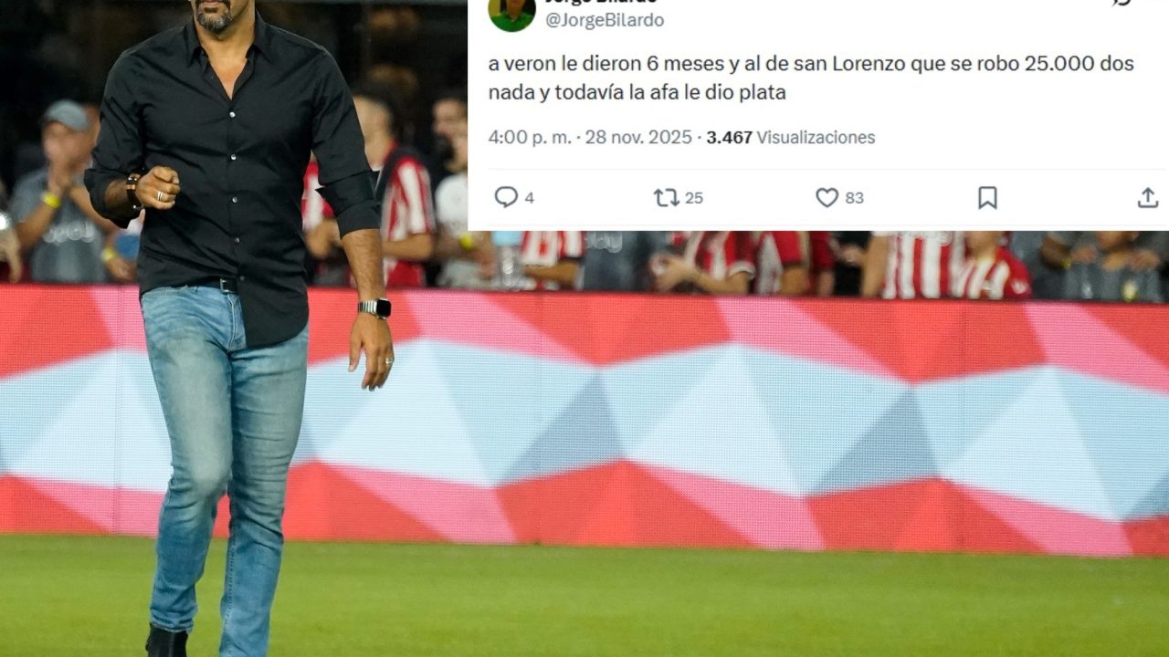 "A Verón le dieron 6 meses y al de San Lorenzo, que se robó 25.000, dos nada y todavía la AFA le dio plata", afirmó JB desde su cuenta de X. Cabe recordar que en el caso de Moretti, este fue confirmado en su cargo como presidente en el contexto de la causa por administración fraudulenta y defraudación.