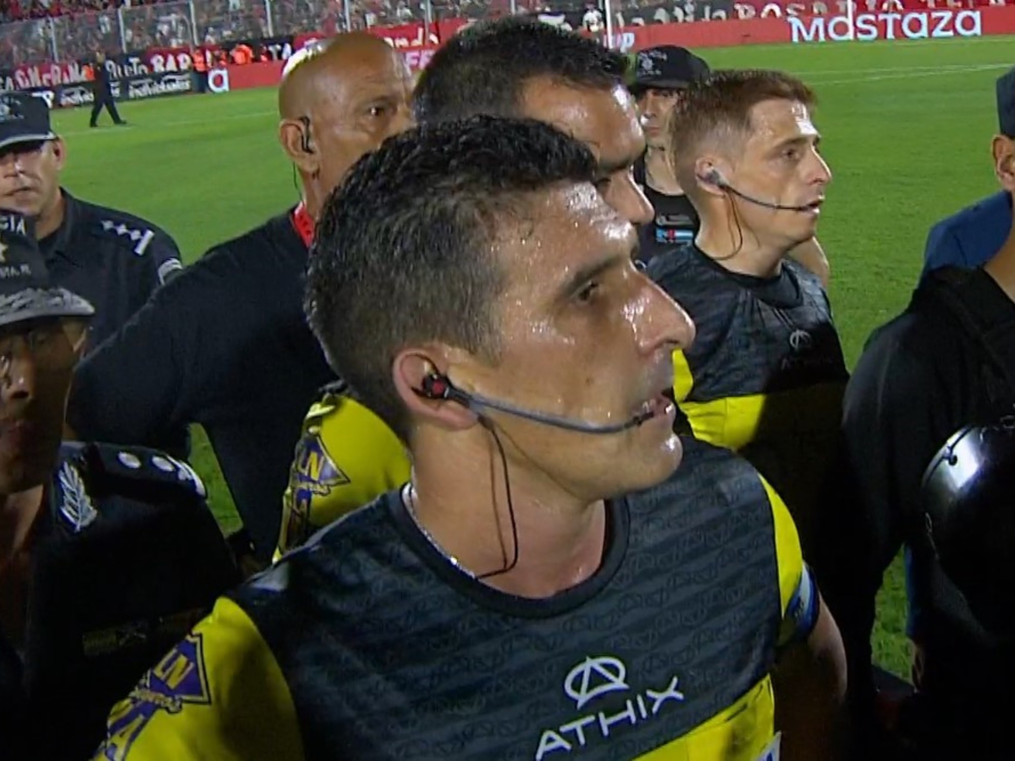 Más allá de la controversia por el penal, otro de los momentos que acaparó la atención fue la invasión de un hincha que intentó dialogar con Merlos, probablemente en desacuerdo con la decisión del penal. Según informó Doble Amarilla, el árbitro no reportó este insólito incidente porque se trataba de un señor mayor con discapacidad.