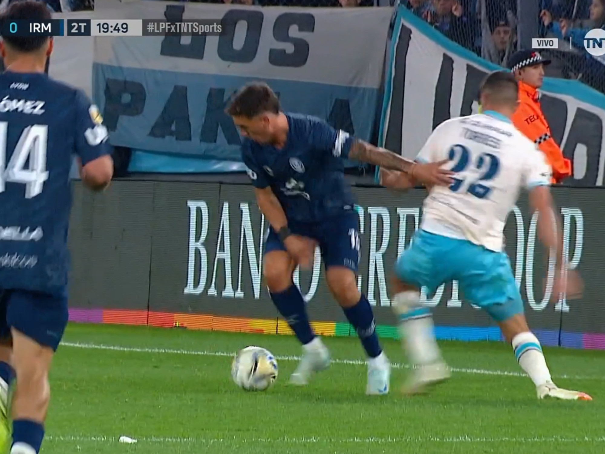A los 22 minutos, Franco Pardo luchó cuerpo a cuerpo con Fabrizio Sartori para impedir que el jugador de Independiente Rivadavia accediera al área, y en la caída, sufrió una lesión en el aductor.