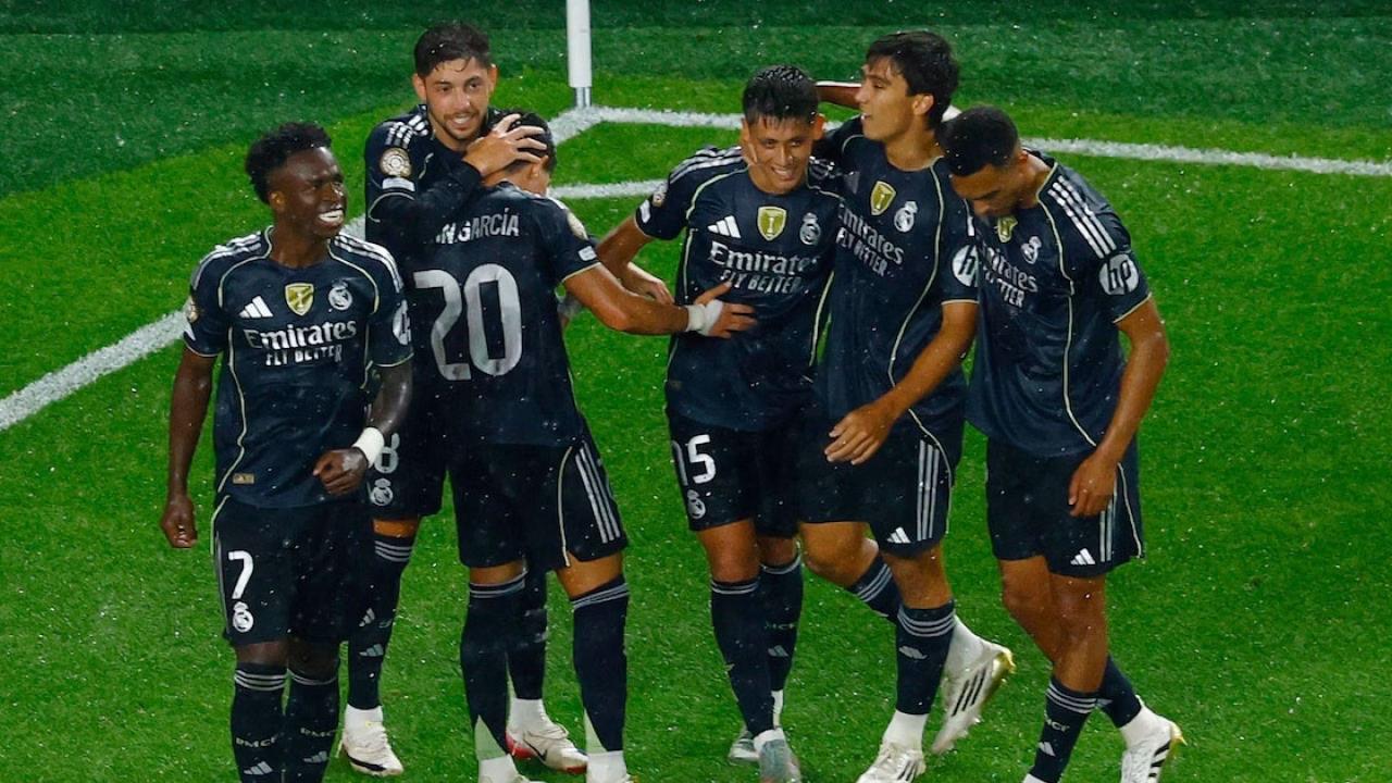 Presión alta y juego directo. Los jugadores del Real Madrid corrieron por el estadio Lincoln Financial Field. No había un solo rincón del verde, en el que no hubiera un jugador con la camiseta negra (los de Xabi Alonso jugaban con la segunda equipación). Llegaban a absolutamente todo. Se convirtieron en la peor pesadilla de los jugadores de Salzburgo. A la alta presión se sumaba la conexión entre los futbolistas. Tocaban los acordes de una misma sintonía, la que Xabi Alonso les indicaba batuta en mano desde la banda. Las ocasiones no dejaron de sucederse con las bandas como principal aliado y balones a la espalda de la defensa austríaca. Unas embestidas que el Salzburgo trató de achicar como pudo.